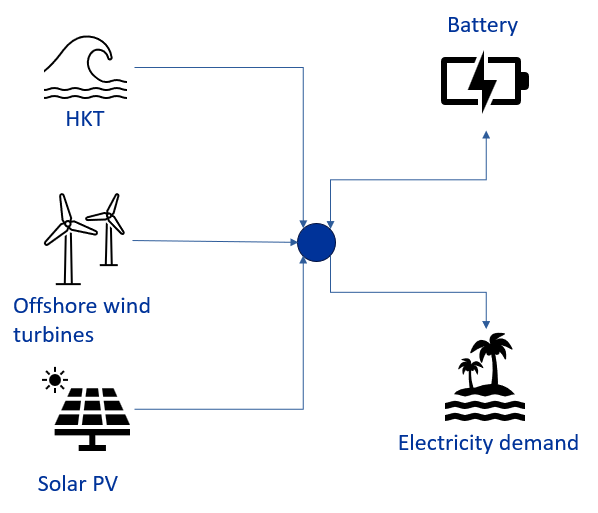 The team compared three very concrete use cases. First, islands and isolated microgrids, where no subsea cable to the mainland is feasible and electricity must be produced locally and continuously. In this setting, tidal stability often allows for minimal battery storage, thereby limiting cost and complexity. Second, industrial plants connected to the grid. Here, the goal is not full autonomy, but lowering electricity costs by generating part of the demand on-site. Depending on the grid purchase price, turbine costs, and financing conditions, the optimal solution may be a tide–solar hybrid, with each technology complementing the other (solar by day, tides by day and night). Finally, independent producers intending to sell all electricity to the market. In this scenario, turbines still require further cost reductions to become fully competitive.